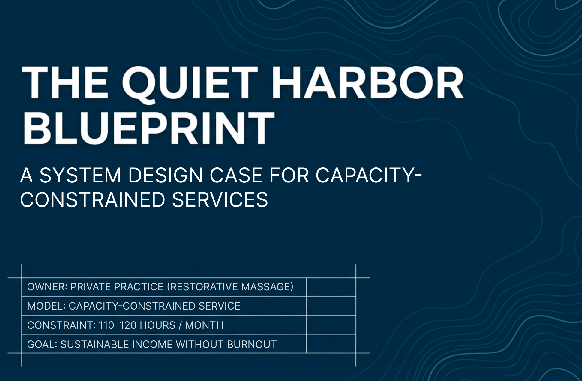 * This case applies product architecture principles outside a software context. The domain is a capacity-constrained service business. The approach is the same: define the system before defining the output, model constraints before designing solutions, and replace ad hoc decisions with explicit rules. Domain is secondary. The method is not.